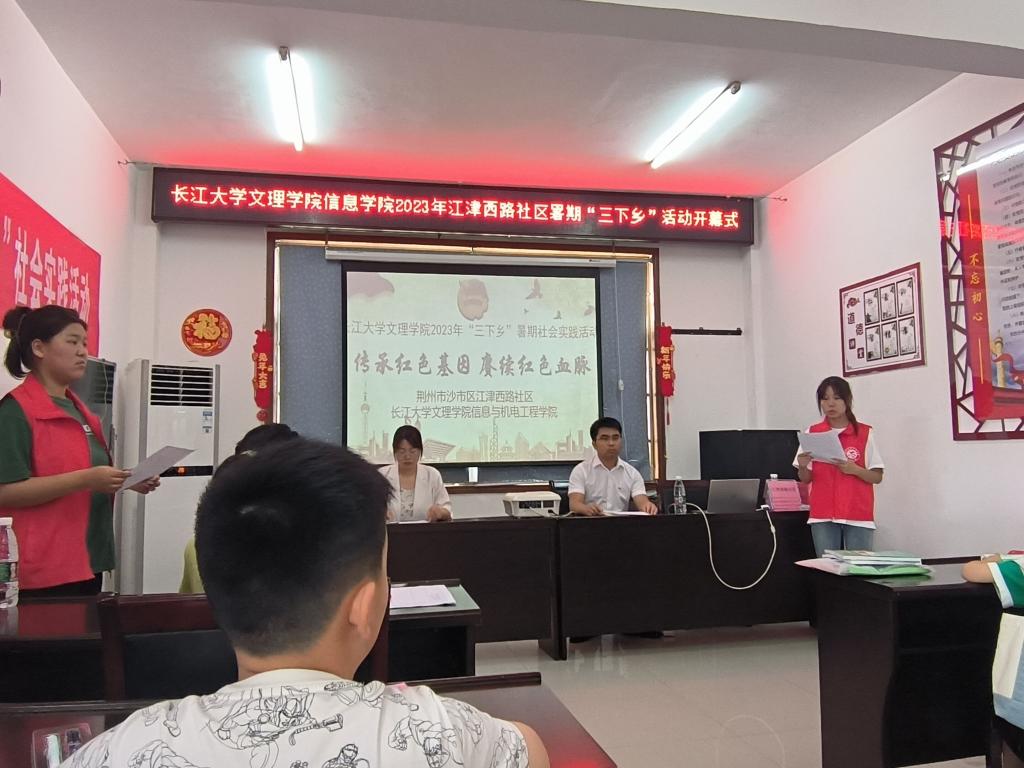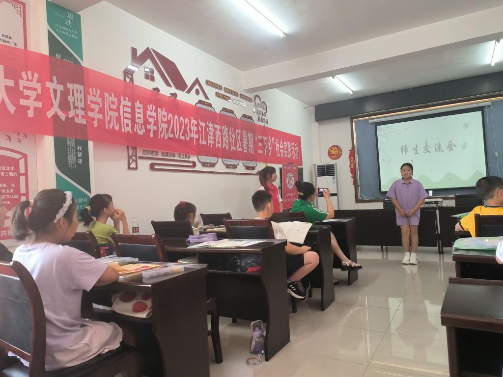 本网讯(学生记者 张瑞琦)7月10日上午,我院“三下乡”暑期社会实践志愿者服务队于江津西路社区居委会三楼开展“希望家园”社会实践开幕式,我院党总支副书记成观雄出席,江津西路社区王书记参会,“三下乡”志愿者服务队全体志愿者参加活动。