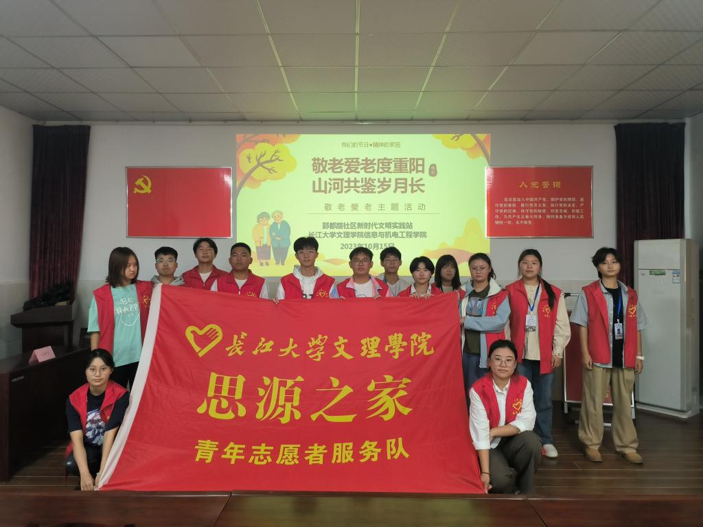 本网讯(学生记者 冯欣)重阳节来临之际,为积极响应《全国老龄工作委员会关于开展2023年全国“敬老月”活动的通知》文件精神的号召、大力弘扬中华民族尊老敬老的传统美德、延续中华民族“老吾老以及人之老”的传统美德,10月15日,我院志愿者服务队联合郢都路社区开展了“敬老爱老度重阳,山河共鉴岁月长”敬老爱老活动。