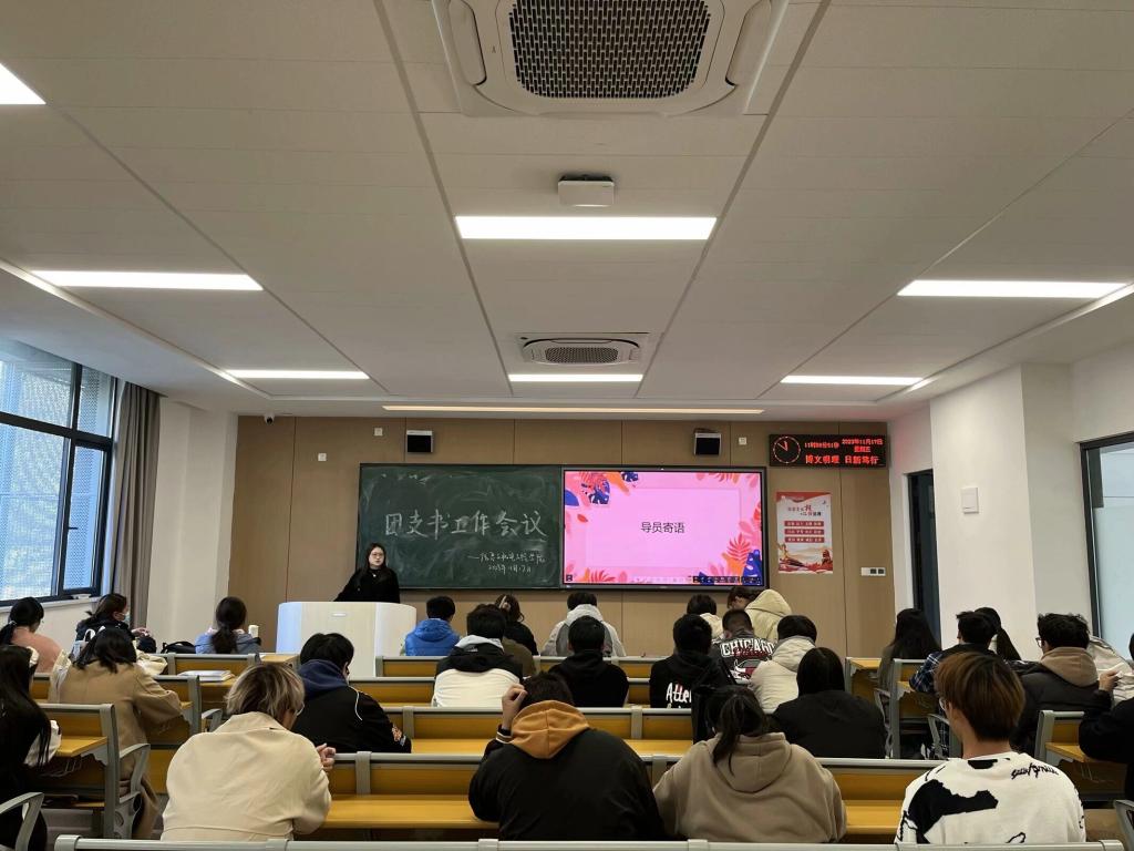 本网讯(学生记者 杨珺涵)为进一步加强我院团支部标准化规范化建设,提升团支部书记工作能力,扎实推进学院各项团务工作落实落细,11月17日中午,我院于A-106教室开展团支书工作会议。会议由李芃辉主持,我院辅导员燕梦蝶出席,我院全体团支书参加。