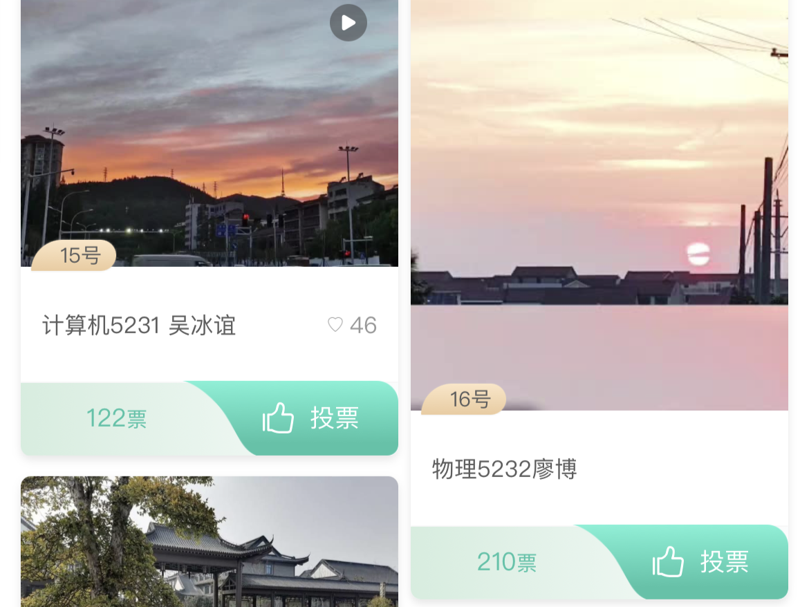 本次活动作品以照片或视频的形式进行投稿,参赛者将作品编辑好后发送给指定志愿者,志愿者汇总并上传至微信小程序,通过投票决出排名,最终,计算机5231董娜获得第一名,机械5232燕一搏、物理5232廖博获得第二名,机械5232沈诗敏、计算机5231吴冰谊、计算机5234李湘湘获得第三名。