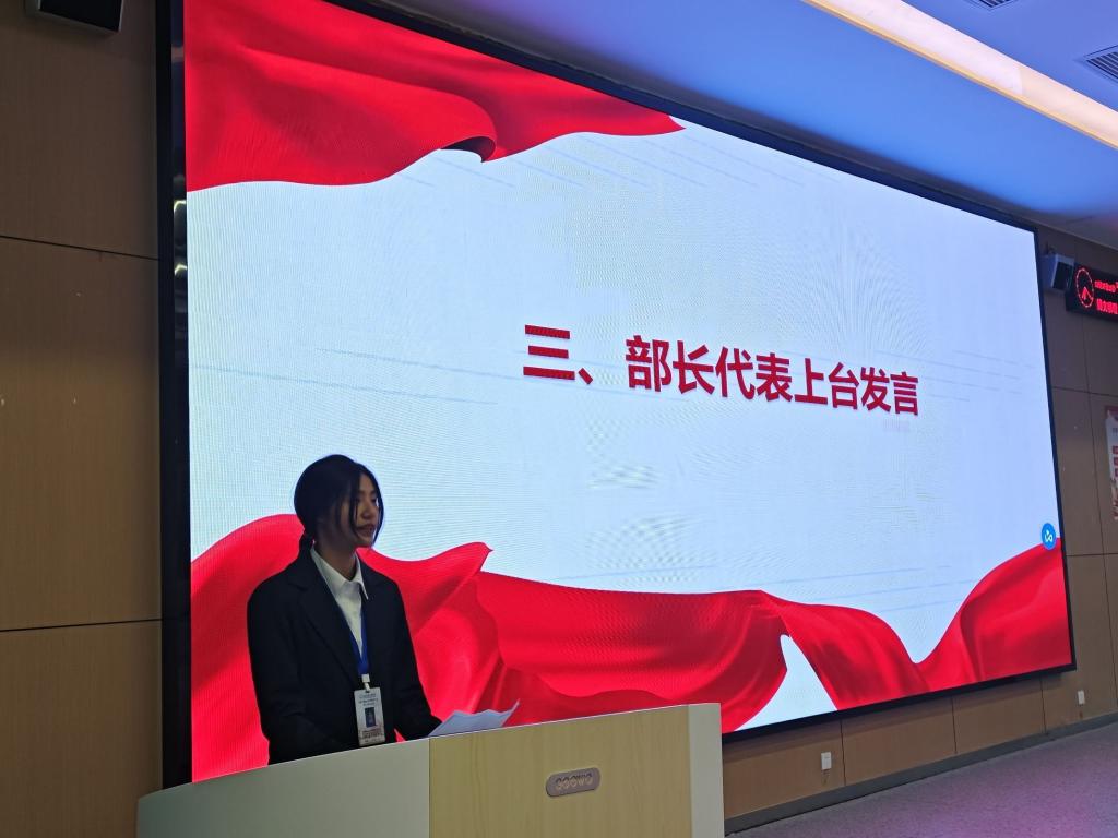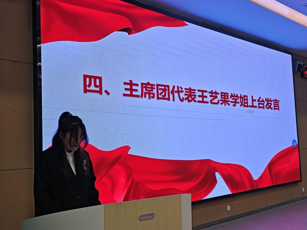 会议开始,学生会干事代表王振强和部长代表王晓羽依次上台发言,他们分享了学生会工作期间的学习经历和宝贵收获,并对全体成员的辛勤付出表达了感谢。随后,学生会副主席王艺果汇报了本学期的工作计划,她提出要进一步加强学生会队伍建设,提高成员的综合素质。党总支副书记王大专老师聆听了汇报,他对学生会的工作表示了认可和赞扬,同时指出了学生会现阶段工作出现的一些问题,他强调学生干部做好工作的同时也要以学习为重,积极参加学科竞赛,此外,他提出“核心条件优化,争先创优”的方针,要求学生全体成员在以后的工作中一定要按照具体的工作任务,一步一步脚踏实地完成。