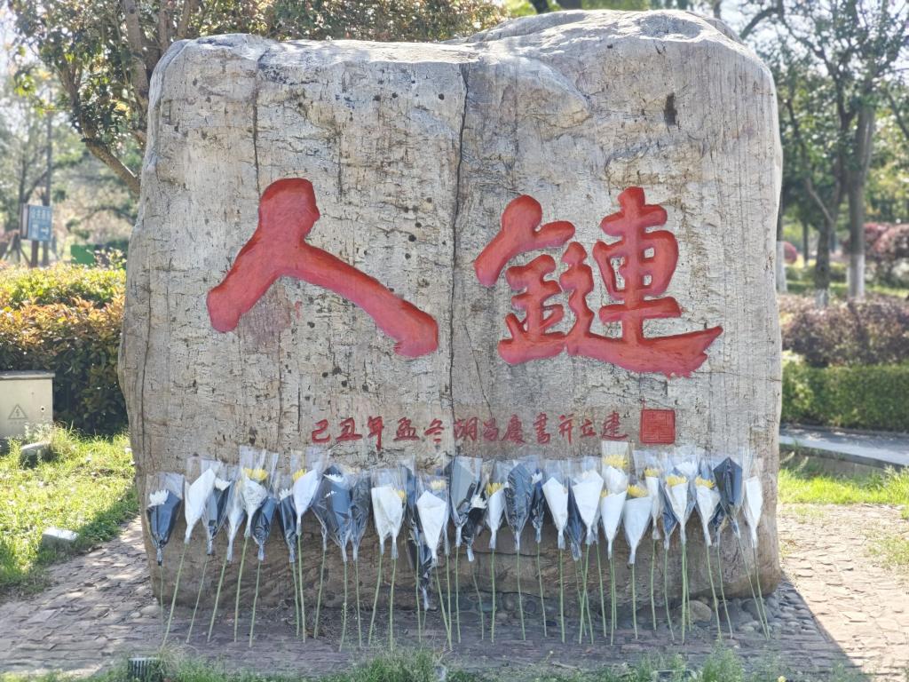 祭奠仪式分为回顾“人链”故事、集体默哀、献花三个环节。同学们在主持人的带领下回顾了“人链”故事,进一步了解了三位英烈的英勇无畏与无私奉献。随后全体师生在“人链”纪念碑前默哀三分钟。默哀毕,同学们依次走石碑前向烈士们献花,寄托哀思。