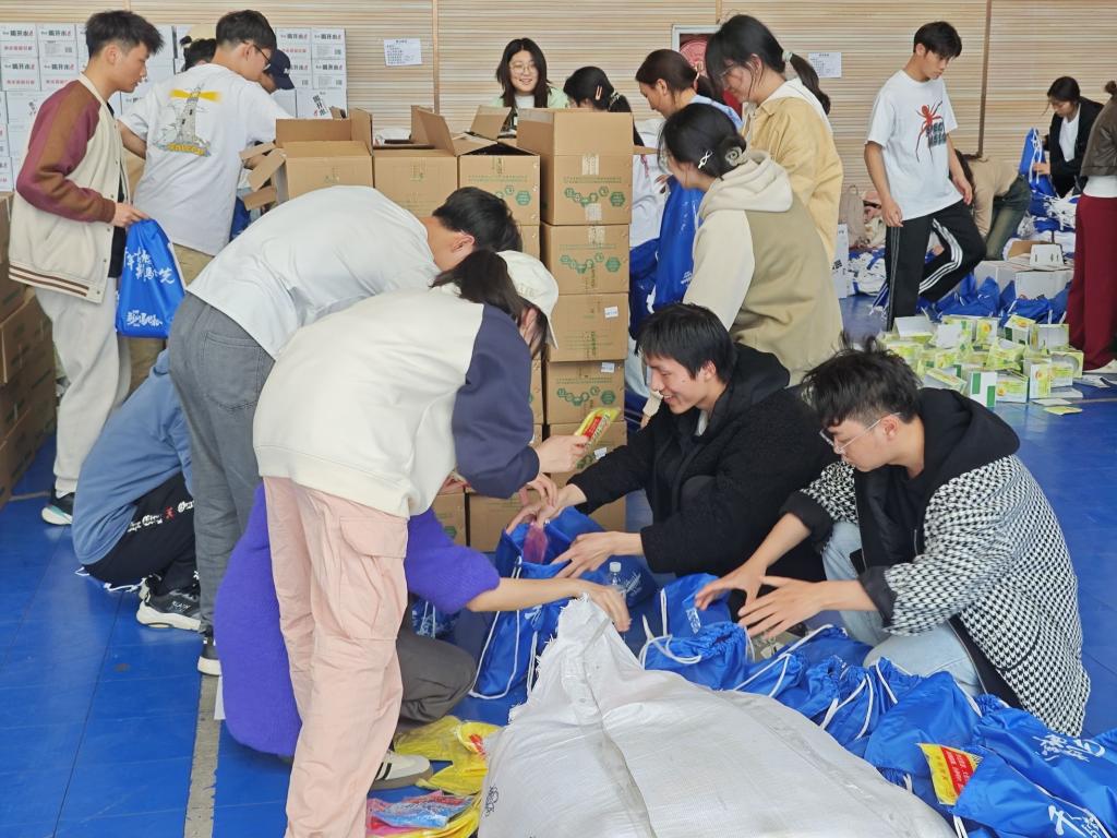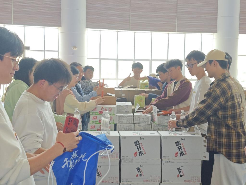分拣工作中,我院志愿者们团结协作,将饮品、食物、雨衣等一件件物品统一装配到餐包中。尽管工作量巨大、枯燥、繁琐,但我院志愿者们将“奉献、友爱、互助、进步”的志愿服务精神与“挑战自我、超越极限、坚韧不拔、永不放弃”的马拉松精神相结合,始终保持着高昂的斗志,坚守在自己的工作岗位上,以饱满的热情投入工作,助力赛事活动,为马拉松保驾护航。