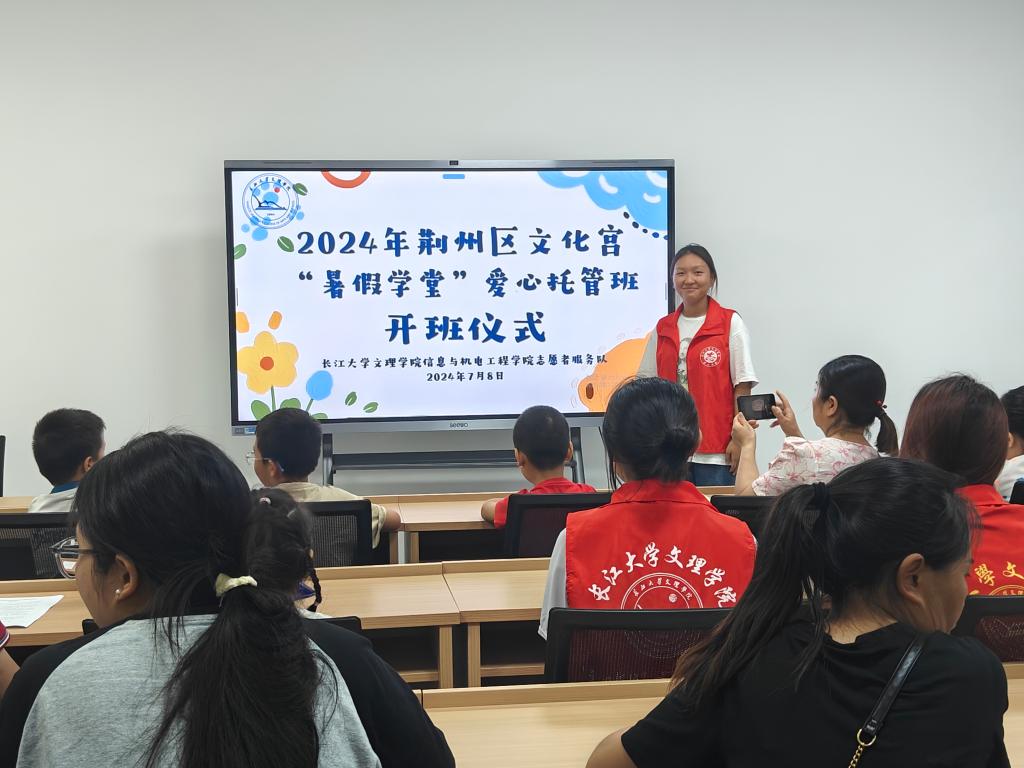 本网讯 (鲁盼/文 王盛博/摄) 为有效培养我院大学生的社会责任感,7月8日我院于荆州区文化宫举行“践行时代使命,挺膺青春担当”暑期“三下乡”社会实践活动开班仪式。