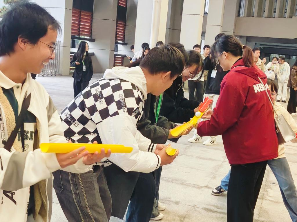 “同心聚力,阳光前行”素质拓展活动备受瞩目,吸引了众多师生的目光。活动现场,精彩纷呈的游戏项目依次展开,“气球争霸”环节中,参与者需要在限定时间内,用各种创意方法保护自己的气球不被对方压破,同时尝试压破对方的气球,现场气氛紧张而热烈。在“一圈到底”环节,同学们手拉手围成一个大圈,通过协作和沟通,共同完成一系列挑战,现场呐喊声、欢笑声交织在一起,充满了活力和欢乐。