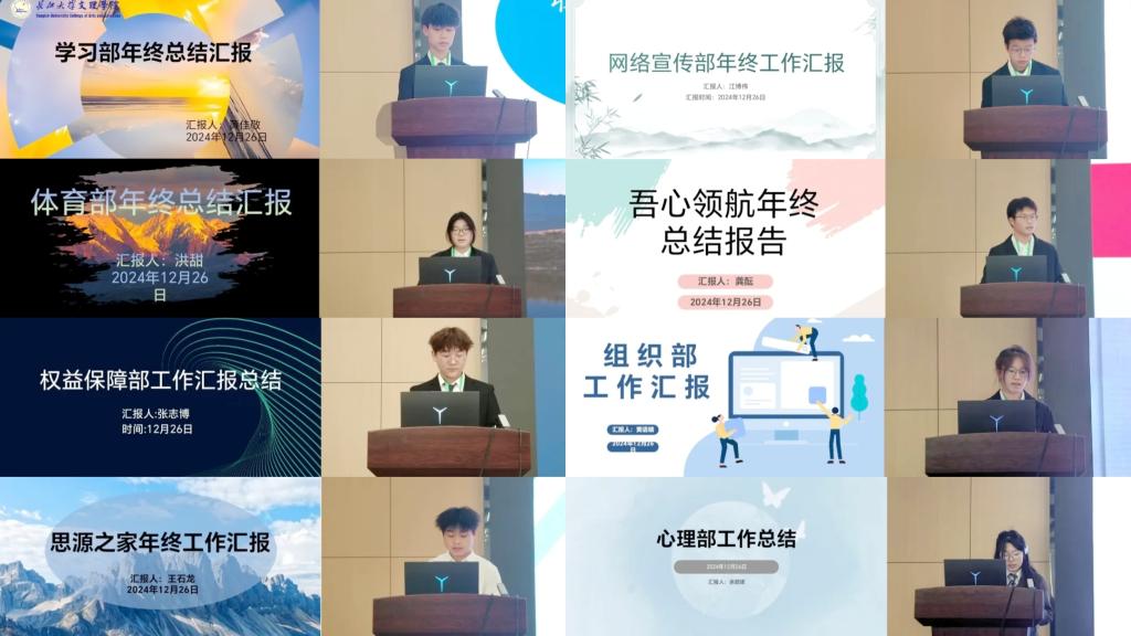 会议伊始,主持人介绍参会嘉宾并宣读本次“三下乡”优秀志愿者、运动会标兵、运动会优秀工作者、心理剧优秀制作人表彰名单。随后,各部门代表依次上台进行工作汇报,他们从各自职能范畴出发,深入剖析了本学期的成就与不足,并对未来工作方向作出规划。各部门负责人一致承诺,将持续秉承热忱的服务宗旨和积极的工作态度,不断为同学们提供更高品质的永利集团活动和服务。各部门汇报完毕后,主席团代表王盛博对整个学期的学生会工作进行了全面总结,他希望全体学生会成员增强协同合作,秉承创新精神,鼓足干劲,向着新征程出发。会议最后,我院党总支副书记王大专作总结发言,他对学生会本学期的工作给予了肯定,同时提出了不足之处,为学生会下一阶段的工作提供了具有建设性的指导意见,激励同学们在未来的工作中继续秉持服务宗旨,创新工作方法,加强团队协作,在新的学期里为学院建设和学生成长成才作出更大贡献。
