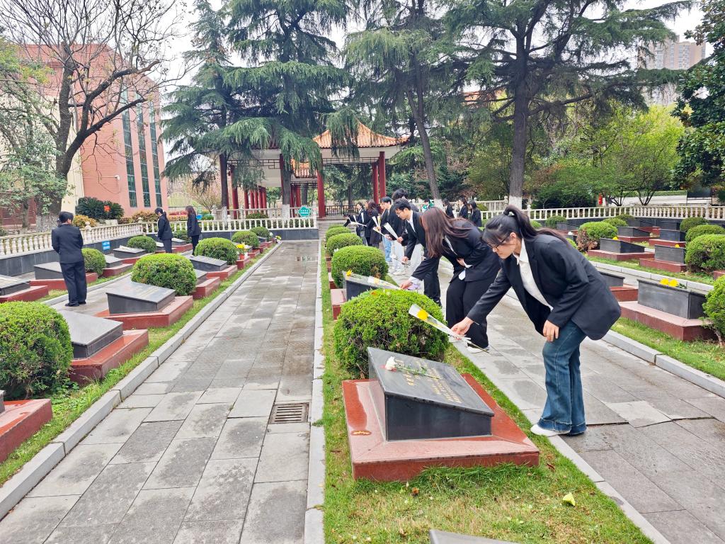本网讯(通讯员 鲁盼/文 李文斌/摄)又是一年清明时,春风落日寄哀思。3月29日,学院组织大学生志愿者服务队学生骨干和学生党支部党员代表一起前往荆州市沙市烈士陵园缅怀革命先烈,瞻仰英雄丰碑,开展清明祭扫。