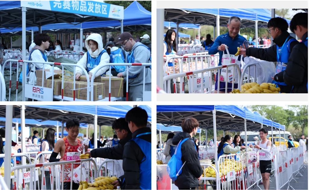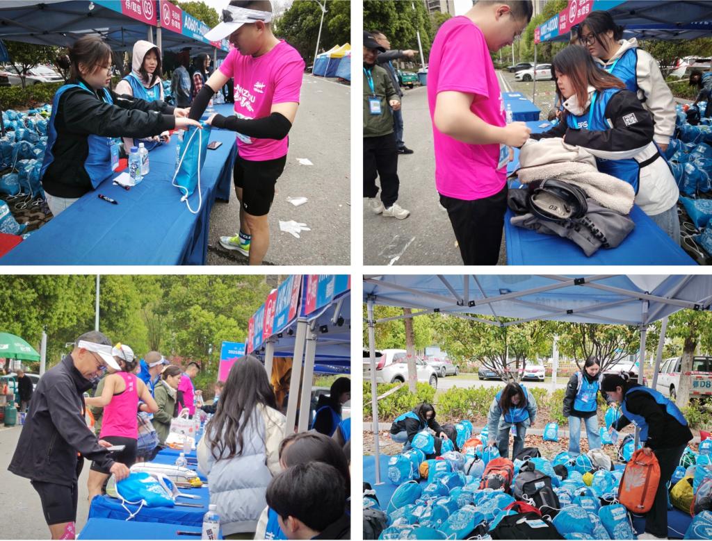 根据赛事组委会安排,院志愿者负责全程马拉松存取衣及半程马拉松的物资发放,在存衣处开放时间,志愿者们坚守岗位,遵循“先勾号码簿,再存取衣物”的原则,志愿者们将选手的衣物整洁有序地摆放,存取衣工作有条不紊地进行。负责半程马拉松的物资发放志愿者们提前到达指定地点,对各种物资进行整理分类,确保物资数量无误。比赛过程中,选手们陆续到达补给点时,志愿者们迅速且热情地递上完赛奖牌、饮用水、香蕉等物资,同时还不忘用暖心的话语为选手们传递力量。
