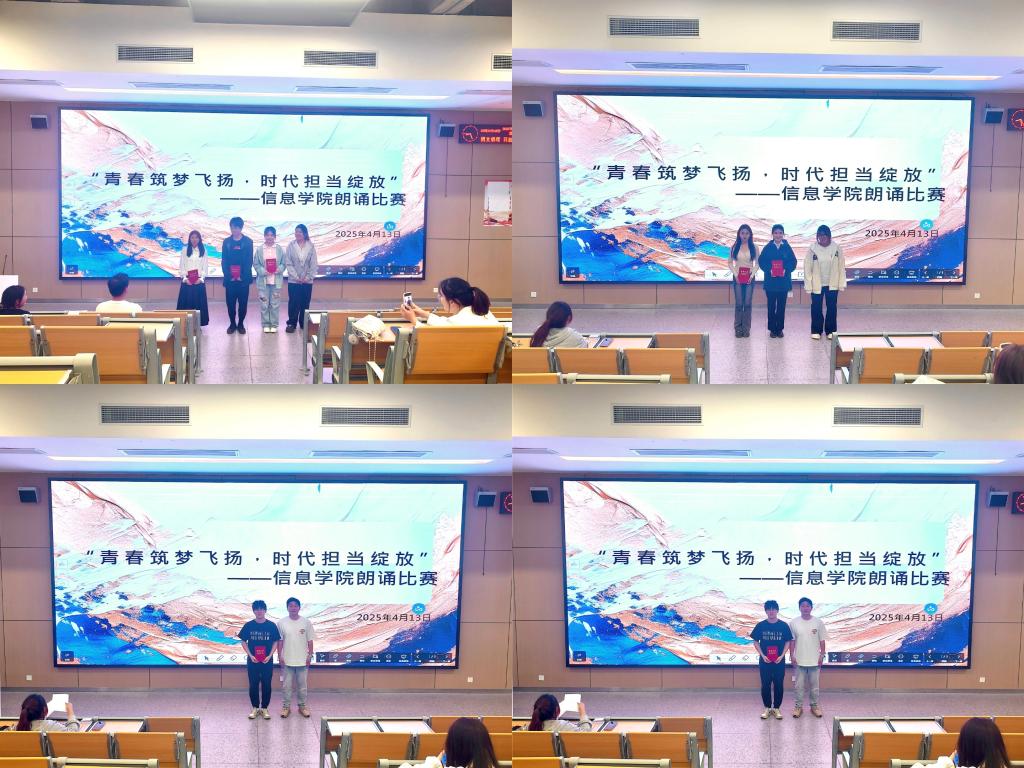 本网讯(通讯员 蔡宇航/文 覃美君/摄)4月13日下午,学院在教学楼B-214开展了“青春筑梦飞扬,时代担当绽放”朗诵比赛。比赛由院学生会综合办公室蔡宇航同学主持。