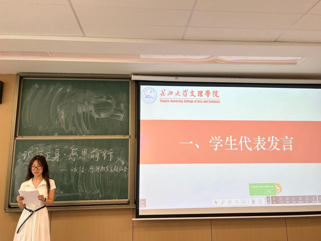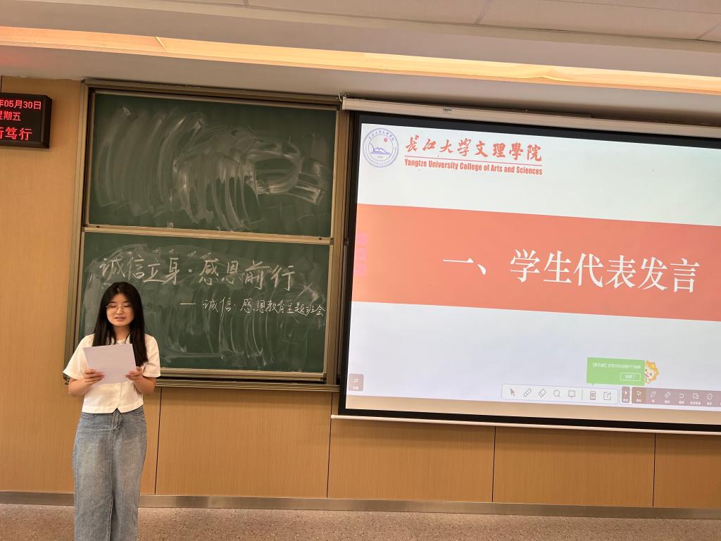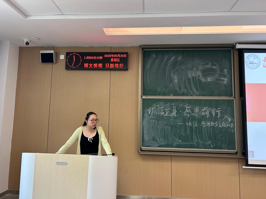 本网讯(通讯员 王妍柳)为深入贯彻落实国家资助政策,强化受资助学生的诚信意识和感恩精神,5月30日,学院于A-102教室开展诚信感恩教育大会。会议由院学生会综合办公室熊小意主持,辅导员杨阳、韩雪莹、王妍柳老师出席,全体受资助学生参加。
