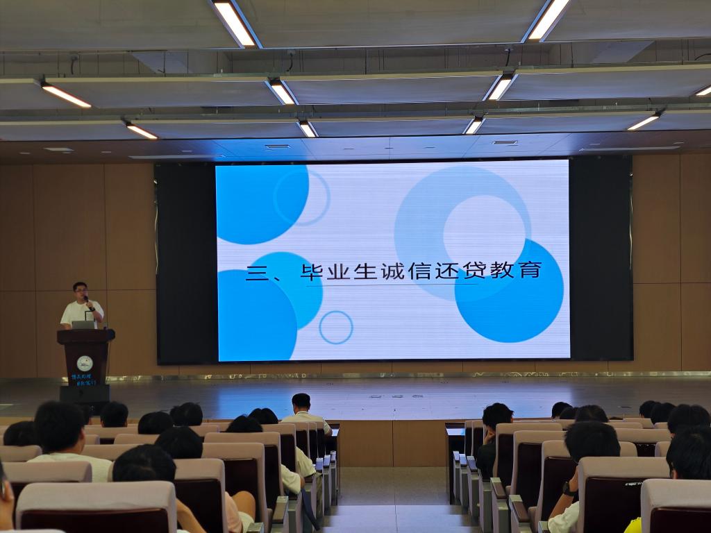 本网讯(通讯员 谢天禹/文 肖宇辰 李文斌/摄)为引导毕业生树立正确的信用意识与感恩情怀,6月3日下午,学院于学术报告厅B-112开展毕业生诚信还贷主题教育班会,班会由毕业班辅导员朱亦丹主持,2025届全体毕业生参会。