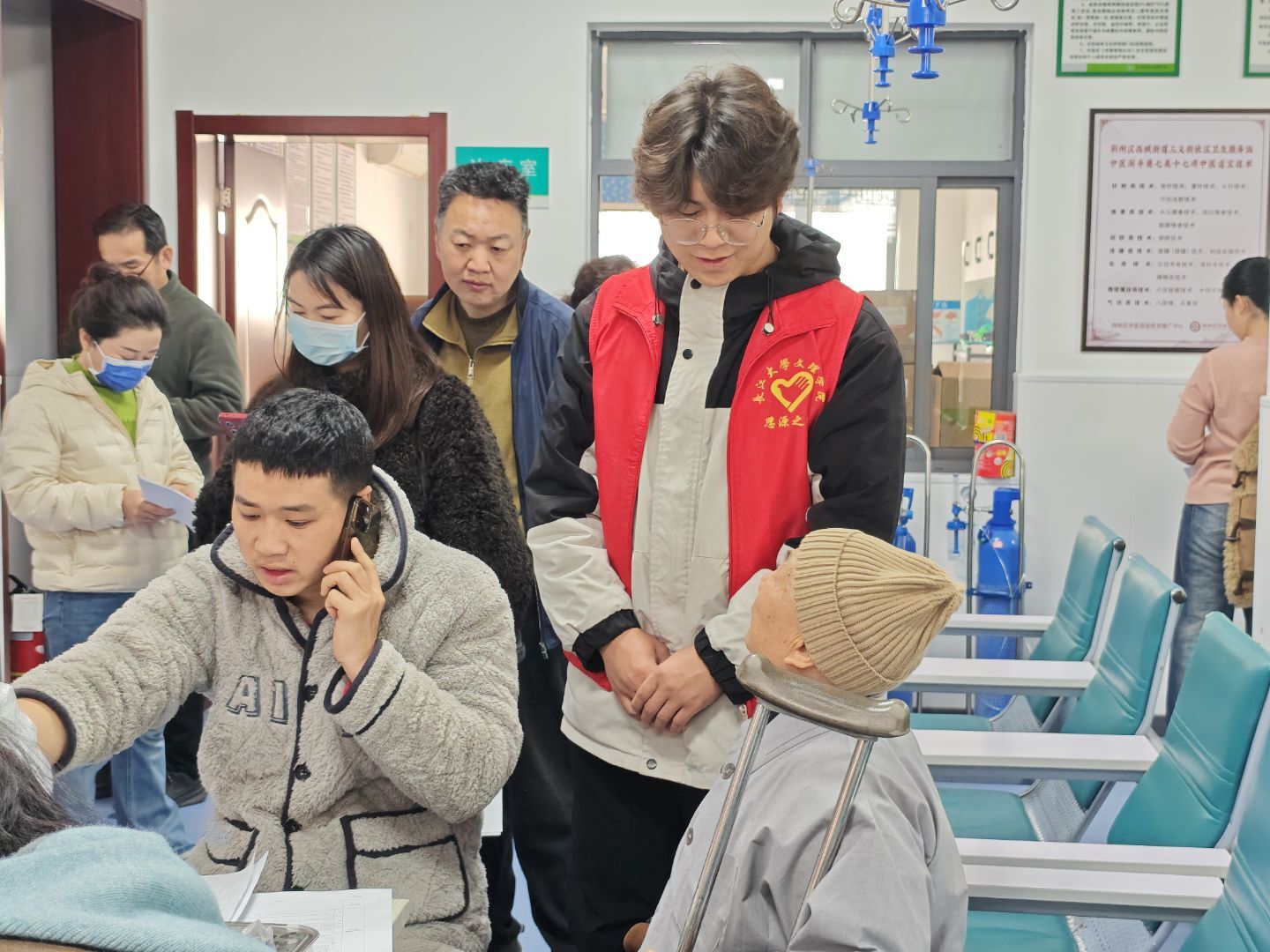 活动现场,志愿者们身着统一红马甲,化身社区“暖心帮手”,分工明确、协作有序开展多项服务。一方面,大家聚焦居住环境整治,深入楼栋清理社区小广告、清扫卫生死角、排查消防安全隐患;另一方面,志愿者们耐心引导居民有序排队、协助登记信息、搀扶行动不便的老年居民在社区健康体检点位完成体检流程,同步普及春季常见病预防、养生保健等健康知识,贴心解答居民疑问,让便民体检服务更有温度。