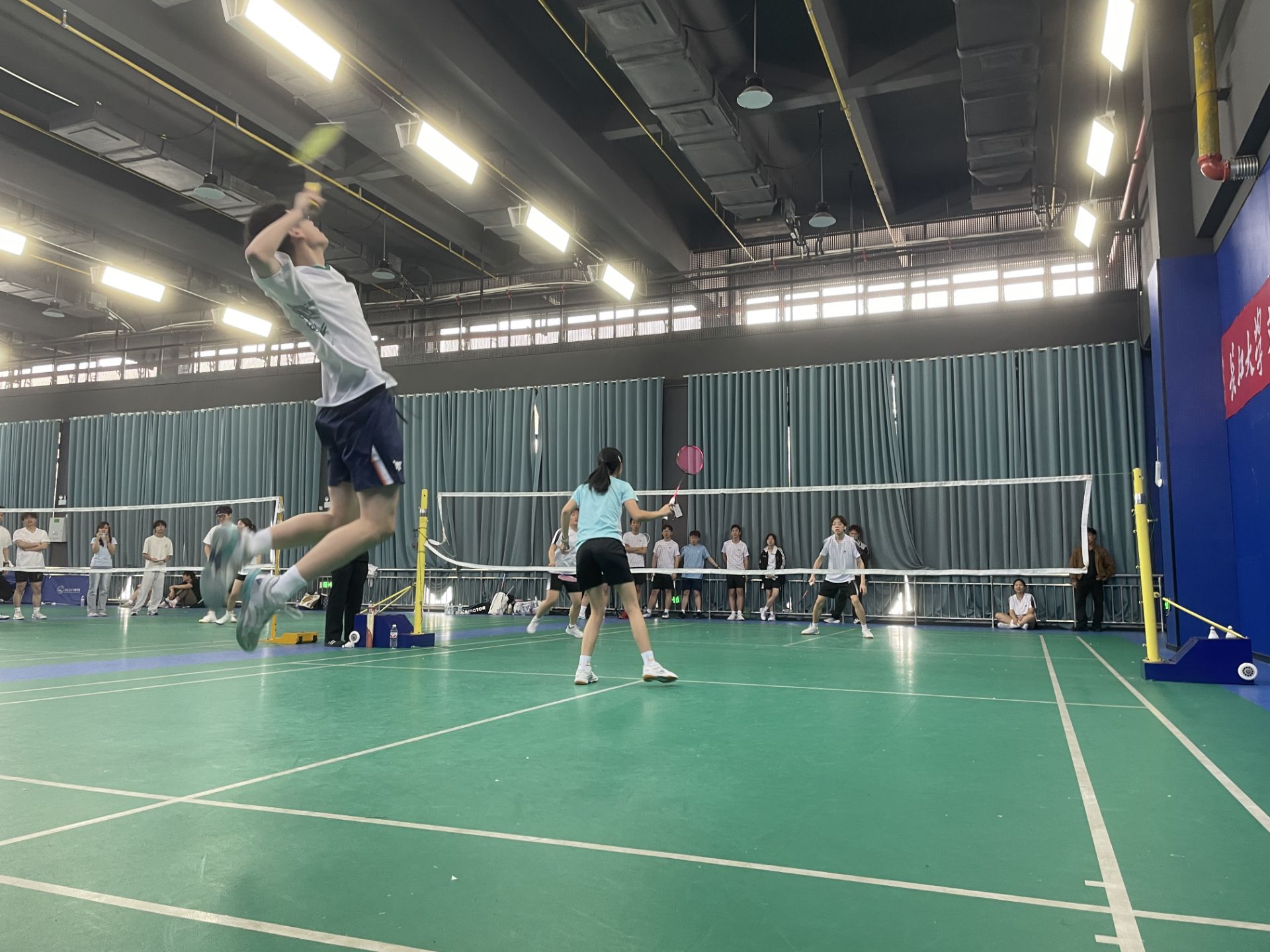 赛场上,学院运动员精神饱满、斗志昂扬。每一场对决中,队员们配合默契、攻防兼备,扣杀、吊球、防守衔接流畅连贯,沉着冷静应对每一轮挑战。大家敢打敢拼,以坚韧的毅力和顽强的斗志全力冲刺,用利落的动作与稳定的发挥掌控赛场节奏,充分展现出精湛的运动技艺与良好的竞技风貌。