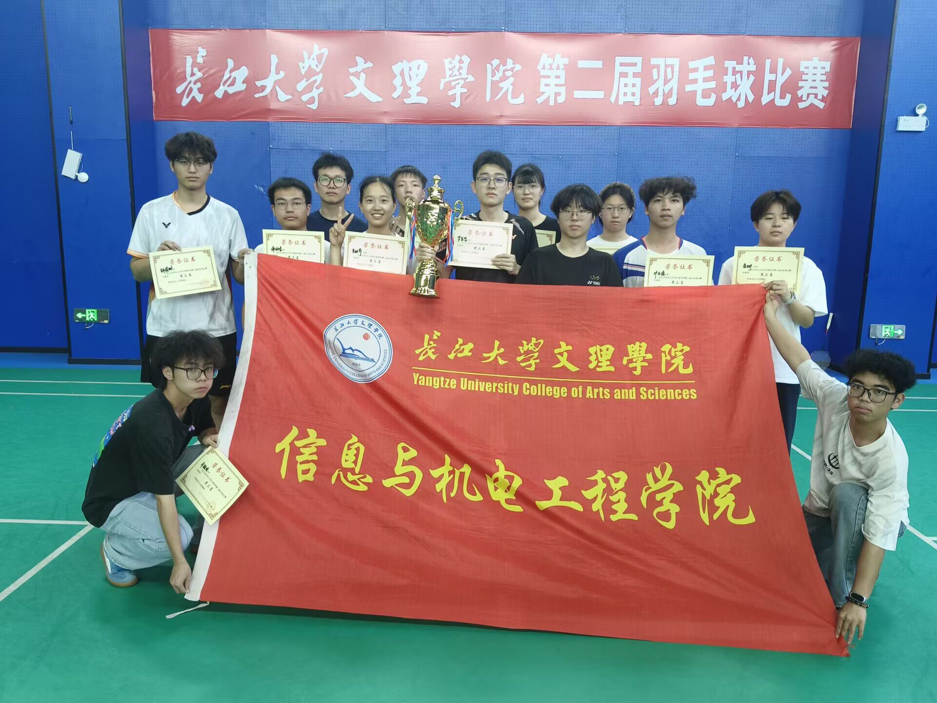 本网讯(通讯员 何子鑫/文 邓永源/ 摄)4月26日,yl7703永利集团第二届羽毛球比赛于食堂三楼羽毛球馆圆满落幕。学院全体队员奋勇争先、全力奋战,经过多轮激烈比拼,凭借扎实的竞技水平,成功斩获比赛季军,为学院增光添彩。