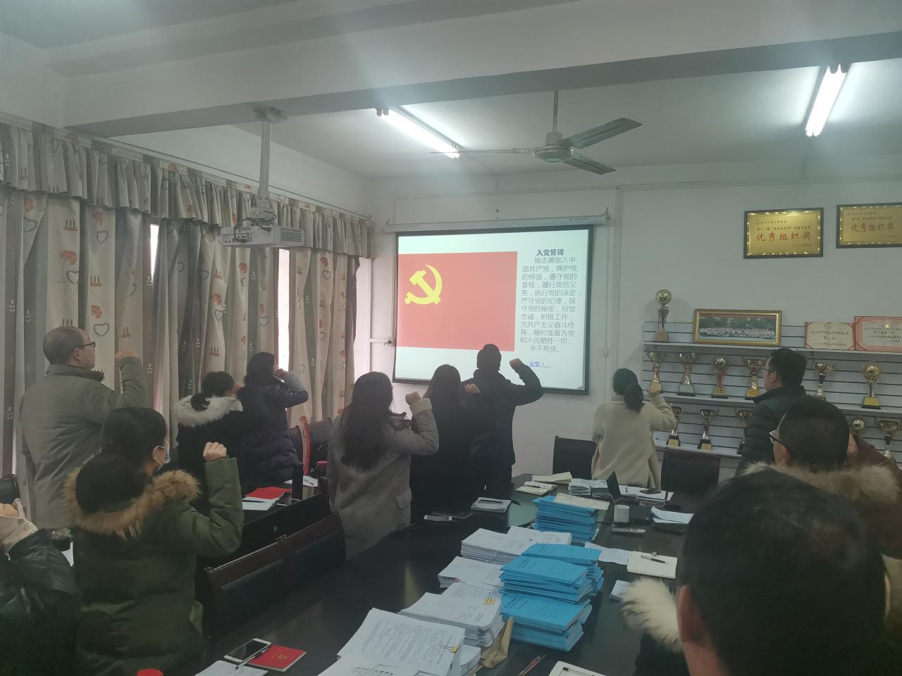 首先在支部书记的带领下,所有老师重温入党誓词,然后政治学习阶段,由教工党支部书记呙明辉带领大家集体学习了习近平总书记教育重要论述讲义和在中央党校(国家行政学院)中青年干部培训班开班式上的重要讲话,习近平在纪念中国人民志愿军抗美援朝出国作战70周年大会上的讲话,中共中央政治局常务委员会召开会议听取“十三五”规划实施总结评估汇报,中国共产党第十九届中央委员会第五次全体会议公报等10项内容。