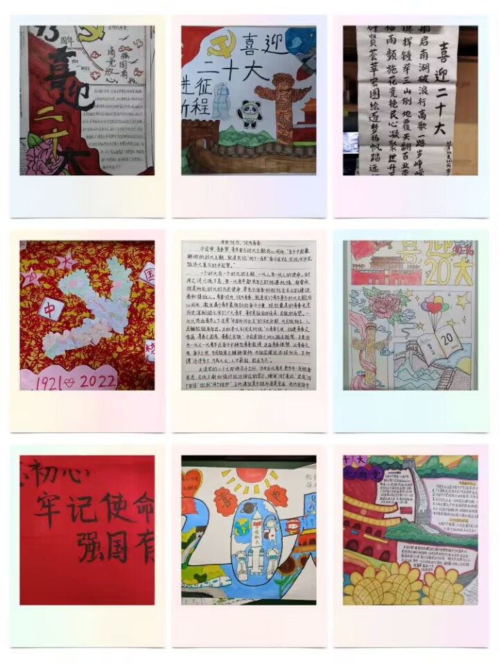 活动期间,同学们通过书法、手抄报、绘画等作品形式以良好的精神风貌,积极向上的心态来迎接党的二十大胜利召开。展现了学生对党史知识的认识,表达了同学们爱党爱国的思想,以及坚定的共产主义信念,其中计科5222邓明煊同学的手抄报作品,表达了他迎接党的二十大,希望党的二十大胜利召开的美好愿望,同时衷心的祝福党,希望党越来越好。