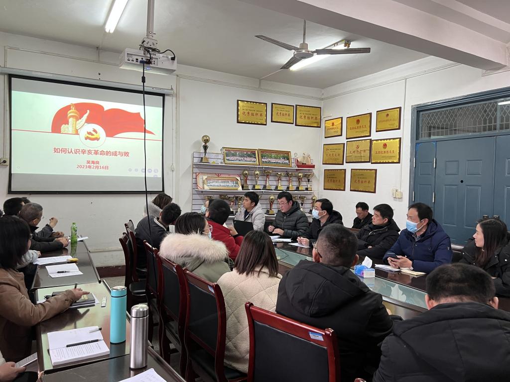 院党总支书记吴海良传达学校有关会议精神,部署“开学第一课”教育引导工作,解读有关工作方案及工作要求,强调要提高政治站位,做到知信行统一,确保整体校园安全。随后,他以《如何认识辛亥革命的成与败》为题讲授党课,系统梳理了辛亥革命的重要历史意义,客观分析了辛亥革命的成与败。