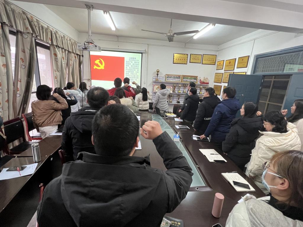 在支部主题党日活动中,全体党员重温入党誓词、交纳党费、集体诵读《中国共产党章程》,学习《习近平谈治国理政》第四卷第十一至第十五部分、yl7703永利集团关于开展违规吃喝问题专项整治的工作方案及学校开展违规吃喝问题专项整治工作动员会的精神、2023年全国教育工作会议精神等内容。
