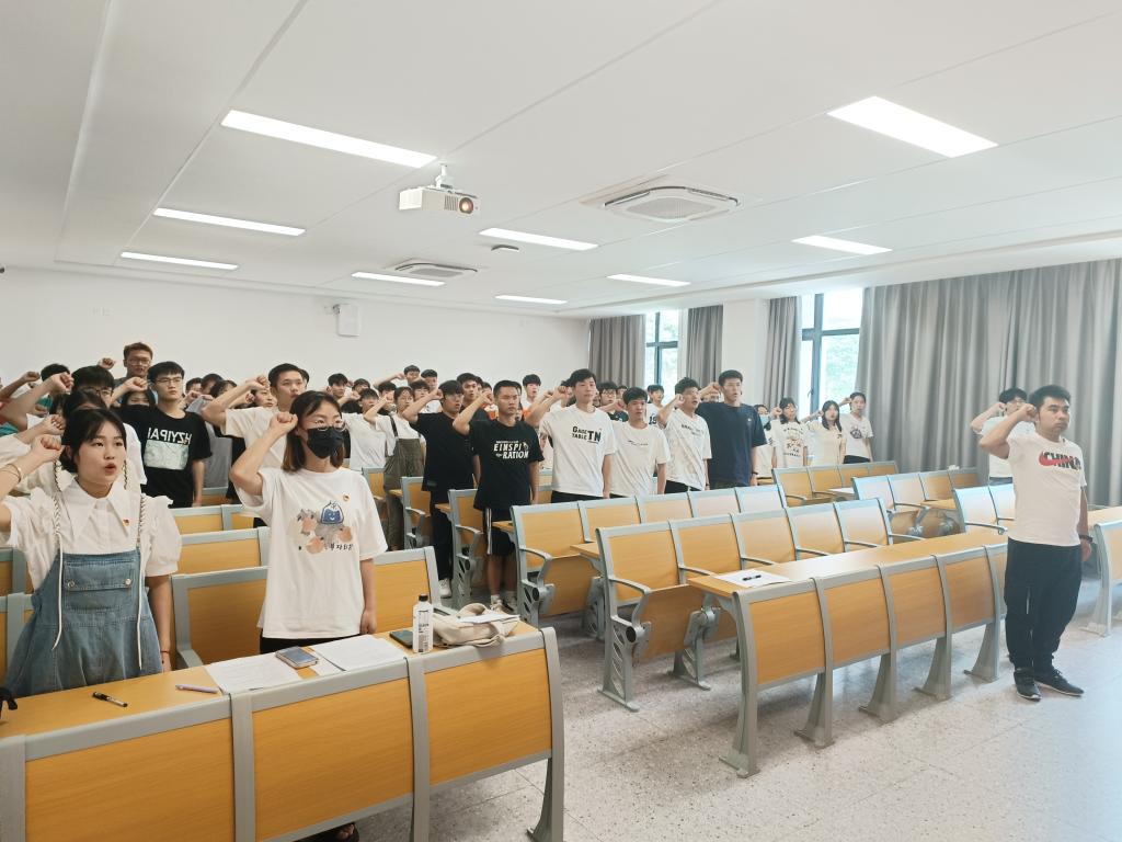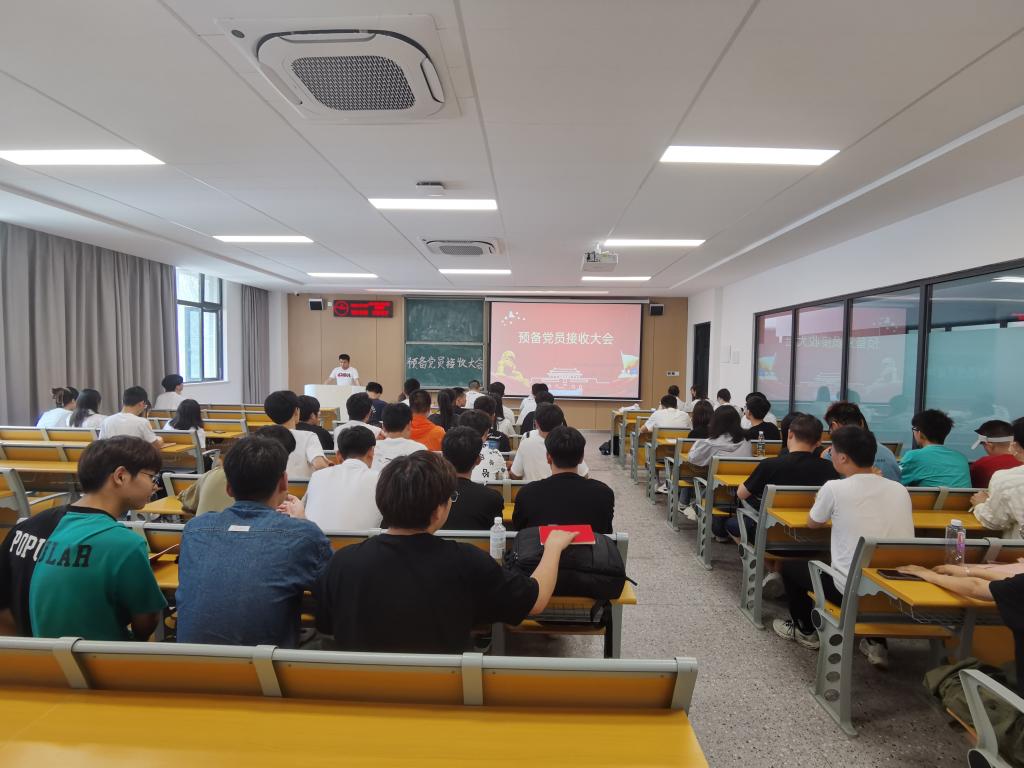 本网讯(学生记者 张志宏)5月18日中午,我院学生党支部在01-A-102M教室召开预备党员接收大会。大会分为两个阶段:预备党员接收、入党宣誓。会议讨论表决孟娜、张依格、蔡小康、赵傲博、程洪凯、刘珈祯、程传凡七名拟发展对象的接收事项。学生党支部书记成观雄主持会议,相关培养考察人一同参与。