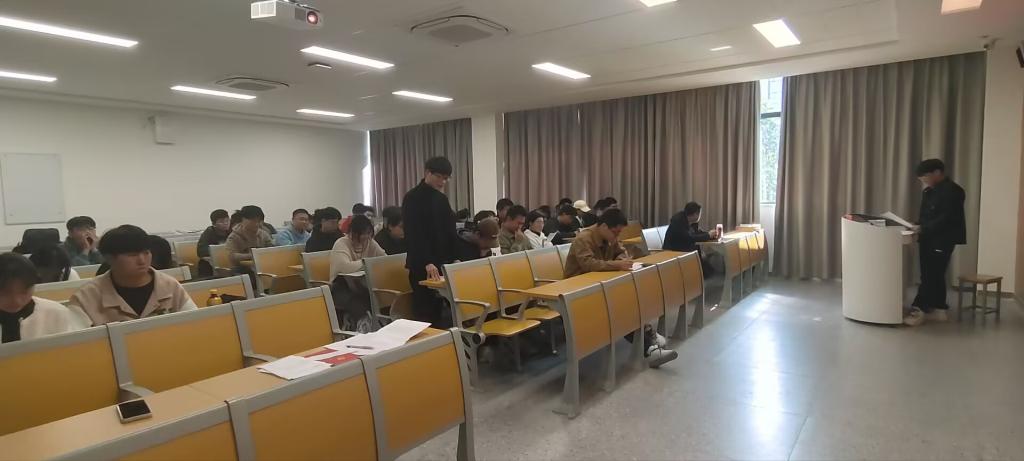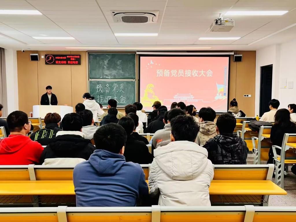 本网讯(学生记者 孟娜)11月20日中午,我院学生党支部于01-A-102M教室召开预备党员接收大会。大会分为预备党员接收、入党宣誓两个阶段,会议讨论表决柯黎亮、曹森、宦吉炎、朱京朋、王艺果、罗锦涛、熊欣、张华洲、杜登群、王崇林十名拟发展对象的接收事项。学生党支部书记王大专主持会议,相关培养考察人一同参与。