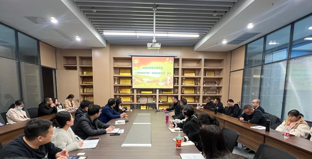本网讯(通讯员 燕梦蝶)11月23日下午,我院教工党支部在510会议室开展11月份政治学习和“支部主题党日”活动。会议由教工党支部书记呙明辉主持,支部全体教职工参加。