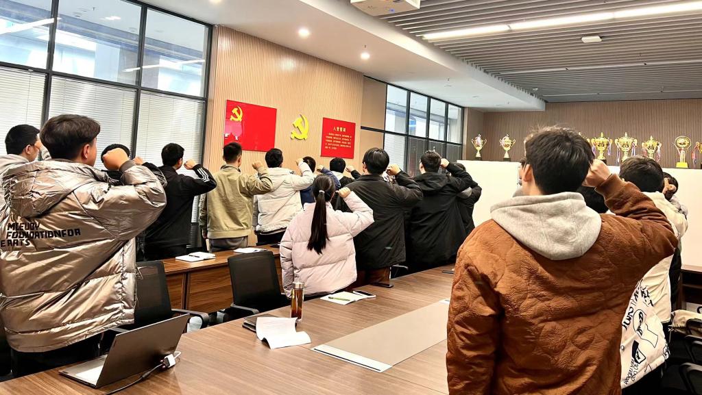 支部主题党日阶段,全体党员重温入党誓词,并按时交纳党费。随后,全体党员集体学习《中国共产党章程》第十、十一章;学习习近平总书记在反映福建宁德坚持35年践行“四下基层”促发展见实效的有关材料上作出的重要批示等重要内容。