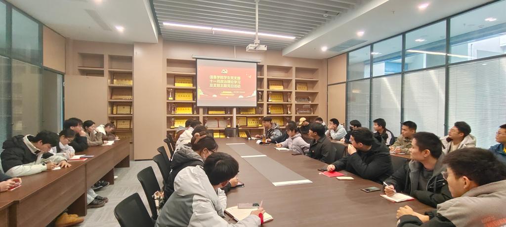 本网讯(学生记者 孟娜)11月28日中午,我院学生党支部于信息学院会议室开展十一月份政治学习和“支部主题党日”活动,会议由丁瑞洁同志主持,学生党支部书记王大专出席,支部全体党员参加。
