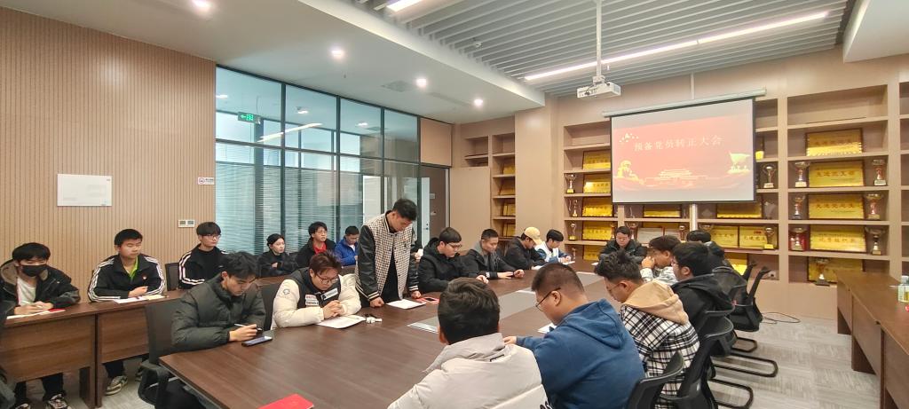 本网讯(学生记者 孟娜)12月8日中午,我院学生党支部于信息学院会议室召开预备党员转正大会。大会分为预备党员转正、入党宣誓两个阶段,会议讨论表决张钦浩、王子鹏两名预备党员的接收事项。学生党支部书记王大专主持会议,相关培养考察人一同参与。