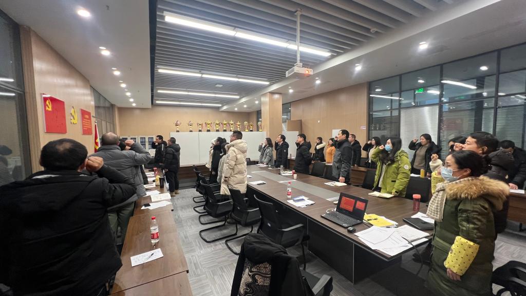 在支部主题党日活动中,全体党员重温入党誓词、交纳党费、集体诵读《中国共产党章程》总纲;集体学习习近平总书记的重要讲话和指示精神:习近平在纪念毛泽东同志诞辰130周年座谈会上的重要讲话;中共中央印发的《中国共产党纪律处分条例》(2023年12月8日第三次修订);湖北省委决策部署《关于深入推进党员干部下基层察民情解民忧暖民心实践活动的意见》;yl7703永利集团精神《永远奔向前方——yl7703永利集团2024年新年献词》等内容。