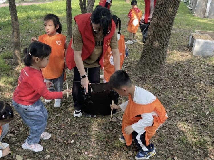 活动中,志愿者带领小朋友们手持筷子拾捡白色垃圾,在实践中使他们意识到乱扔垃圾的危害和保护环境的重要性,逐步养成不乱丢垃圾的行为习惯和爱护环境的责任意识,活动结束后,小朋友们与志愿者一起拍照留念,记录充满意义的时光。