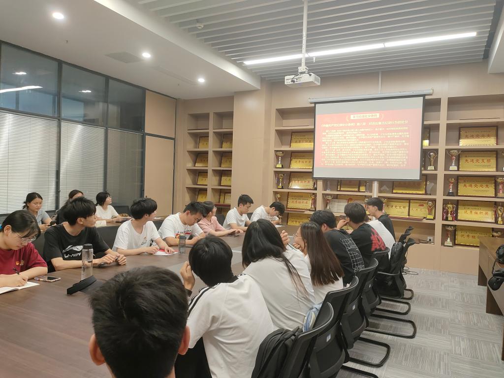 本网讯 (通讯员 周爱娟/文 周爱娟/摄) 6月19日中午,我院学生党支部于信息学院会议室开展6月份政治学习和“支部主题党日”活动,会议由蒋林同志主持,支部全体党员参加。