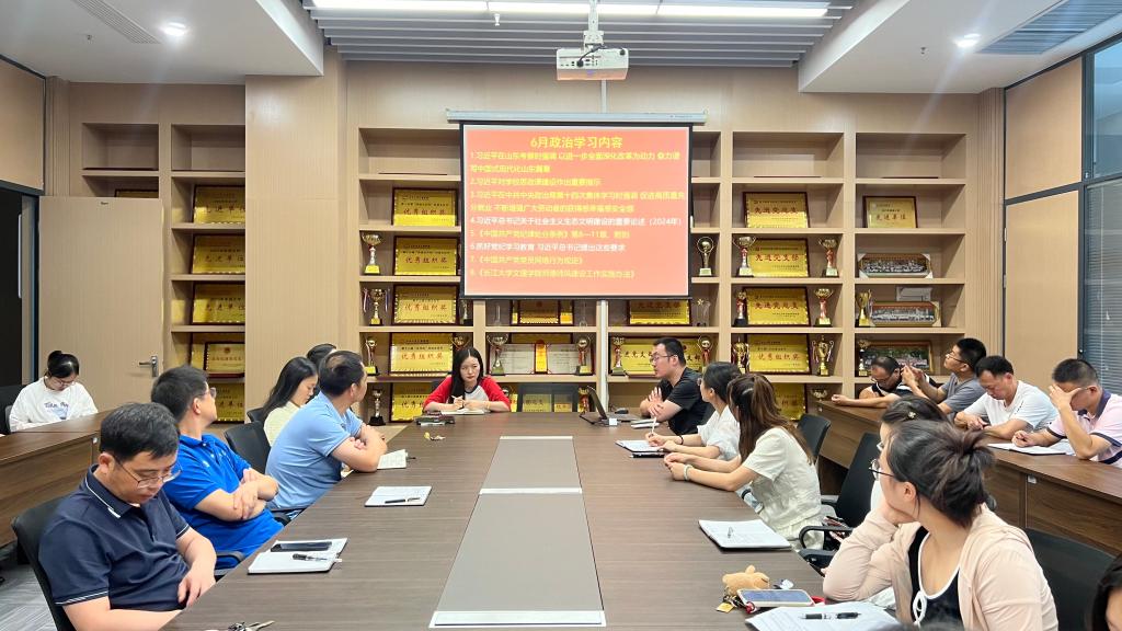 本网讯(通讯员 燕梦蝶)6月24日中午,我院教工党支部在会议室开展6月份政治学习和“支部主题党日”活动。会议由教工党支部书记呙明辉主持,支部全体教职工参加。