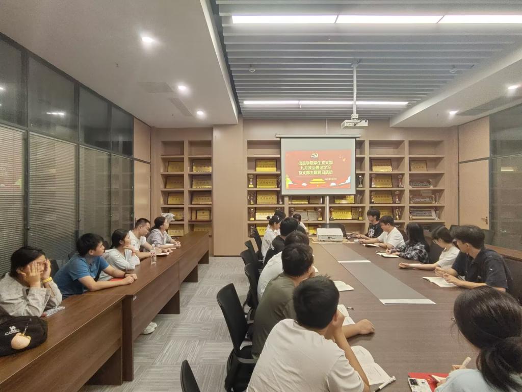 本网讯(通讯员 周爱娟)9月17日晚,学院学生党支部于信息学院会议室开展9月份政治学习和“支部主题党日”活动,会议由羊振豪同志主持,支部全体党员参加。