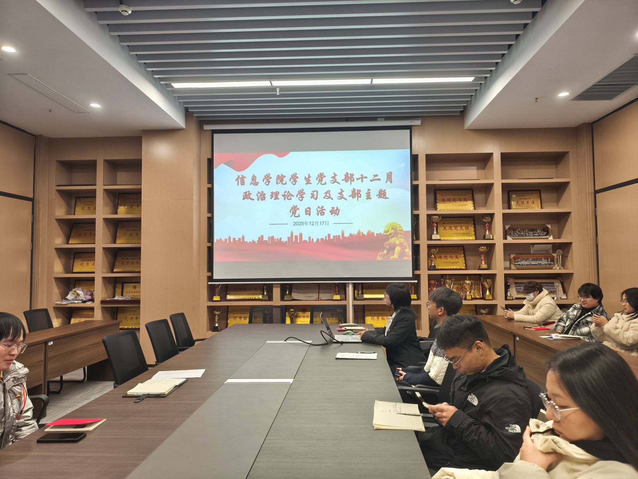 本网讯(通讯员 赵秋丽)12月17日晚上,学院学生党支部于信息学院会议室开展12月份政治学习和“支部主题党日”活动,会议由鲁盼同志主持,支部全体党员参加。