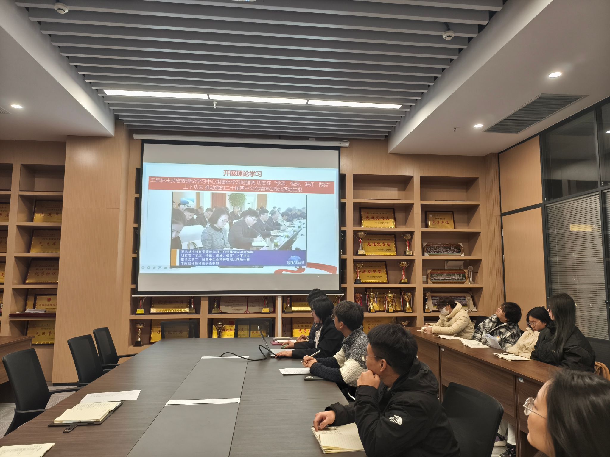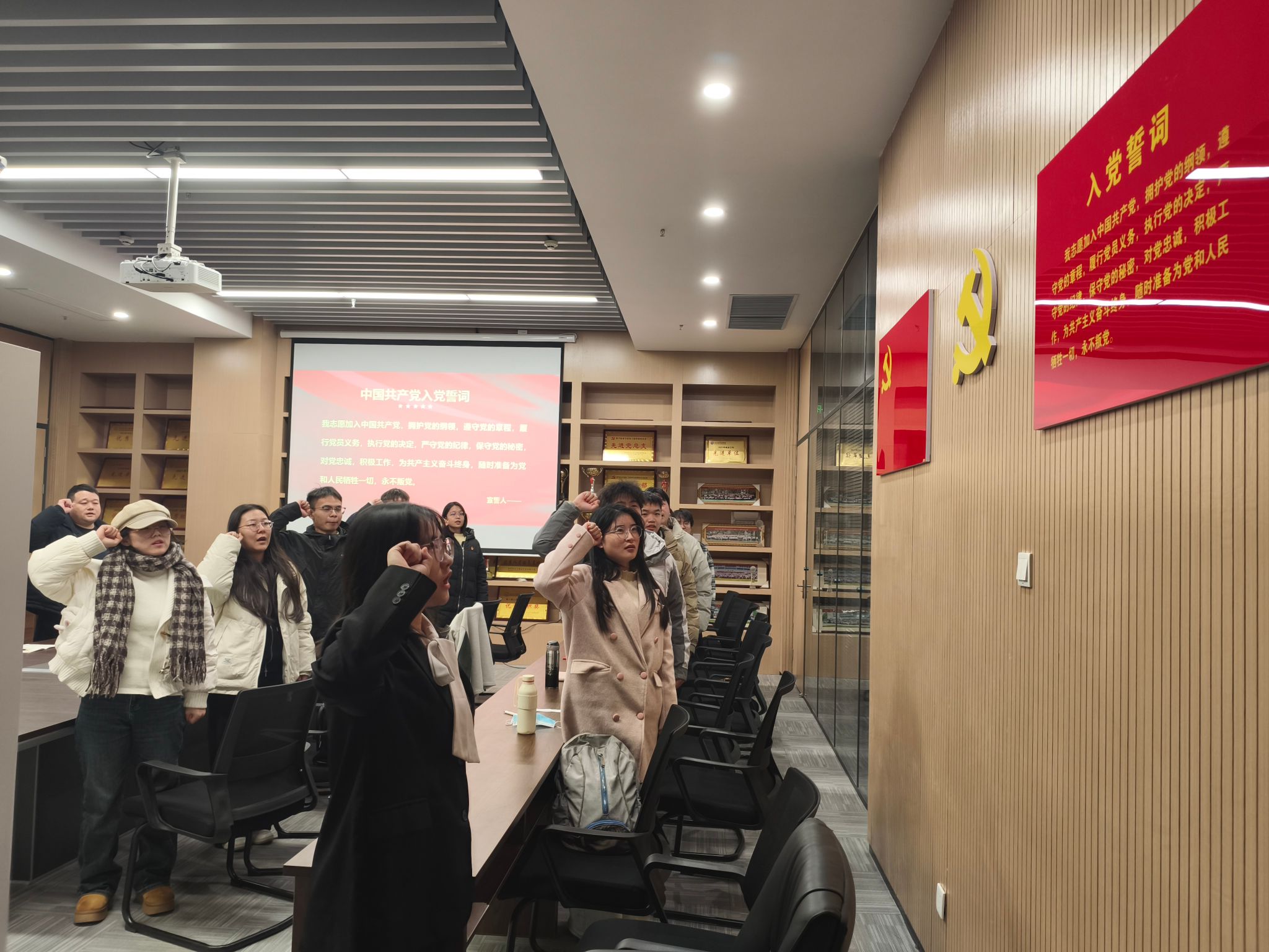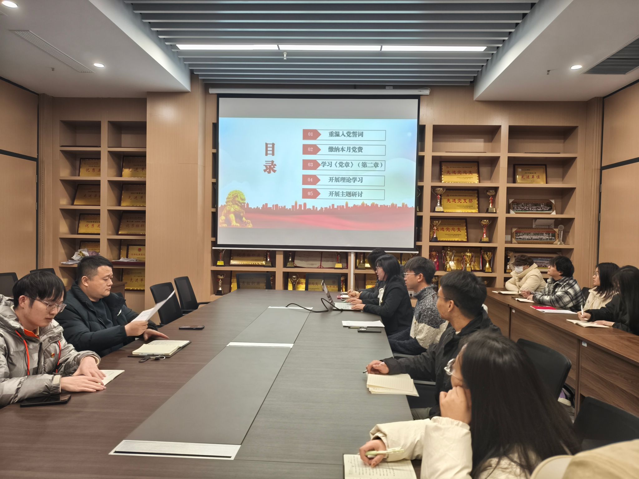 支部主题党日活动阶段,全体党员重温入党誓词,并按时交纳党费。随后,全体党员集中学习《中国共产党章程》(第二章);学习习近平对全面依法治国工作作出的重要指示;学习中共湖北省委十二届十一次全体会议上的内容:牢记嘱托勇担使命,为确保支点建设取得决定性进展而团结奋斗;学习中共yl7703永利集团委员会文件,着重强调入党积极分子的日常管理。