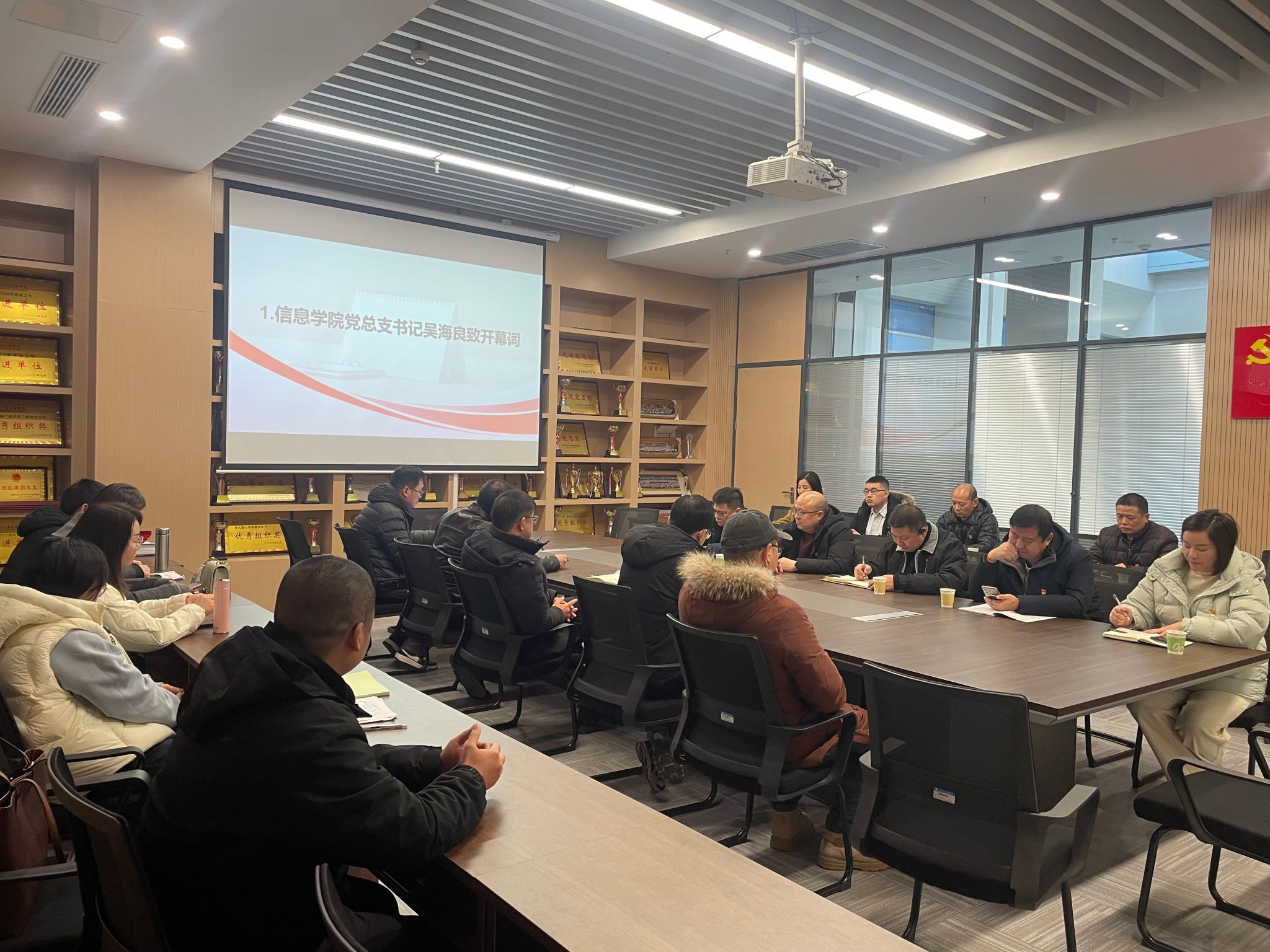 活动伊始,信息与机电工程学院党总支书记吴海良致开幕辞。他表示,本次联合主题党日活动标志着校企双方合作从“战略协议”走向了“实践行动”,是一个巩固成果、共谋未来的新起点。他强调,信息与机电工程学院作为培养信息技术与智能制造领域应用型人才的育人阵地,与中国电信荆州分公司在智慧教育、工业互联网、数字新基建等方面拥有广阔的合作前景。他希望双方坚持党建引领、业务唱戏,将党的政治优势、组织优势切实转化为发展优势与创新动能,通过理论共学、人才共育、服务共担、项目共研、成果共享,构建常态化协同机制,共同打造校企融合、赋能地方的标杆,真正实现“党建强、合作实、发展好”的目标。