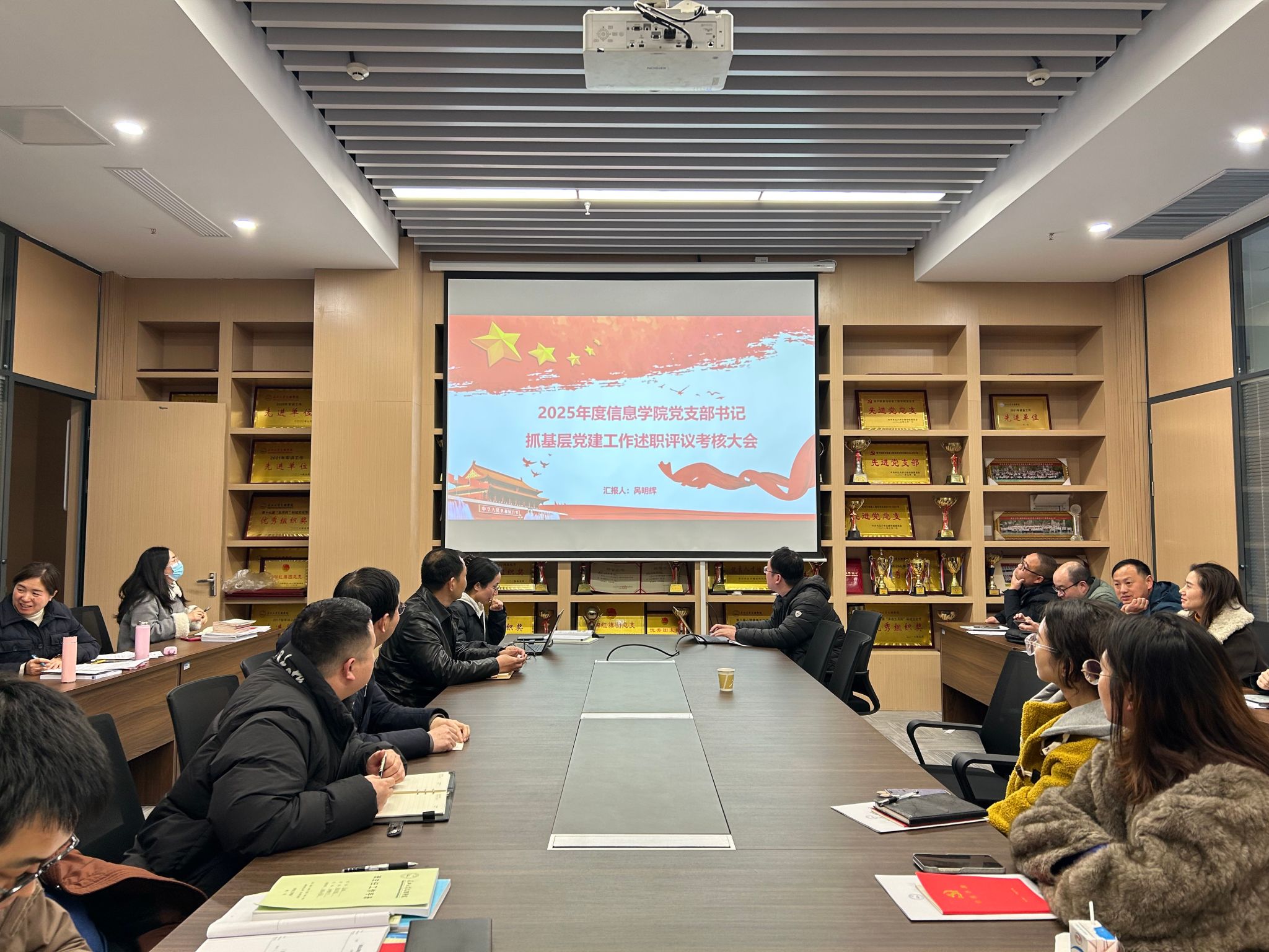 会上,学院教工党支部书记呙明辉围绕2025年度抓基层党建工作情况,紧扣核心职责,以“履职尽责”为主线,系统汇报了一年来在推进全面从严治党向纵深发展、落实立德树人根本任务方面的具体实践与突出成效。报告聚焦党建主业,全面阐述了年度工作的目标定位、实践路径、实际效果,深入查摆了个人在履行第一责任人职责过程中存在的短板与弱项,并对标新时代党建工作要求,明确了下一阶段加强和改进工作的方向路径与重点举措。