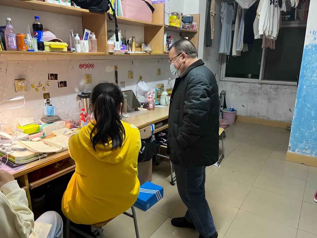 10月9日晚经法系党总支书记李成军、辅导员文国霞、卢佳智一行来到风华园、河滨公寓、学二舍以及校外走读学生租房处看望学生并向同学们传达我校疫情防控要求。党总支书记李成军老师也仔细询问各位同学的身体健康状况、生活及学习情况,同学们也积极回应,氛围和谐融洽。紧接着,李成军书记提醒同学们在疫情期间务必做好防护措施,积极配合学校的防疫工作,同时,学校也会多多倾听同学们的意见,共同渡过难关。随后,两位辅导员老师温馨提醒同学们要勤洗手、戴好口罩,做好自我防护,并利用课余时间多加锻炼。