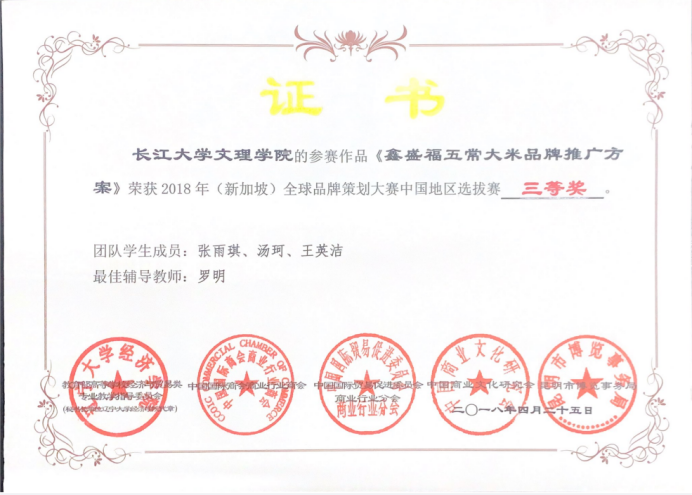 2018年(新加坡)全球品牌策划大赛中国地区选拔赛三等奖