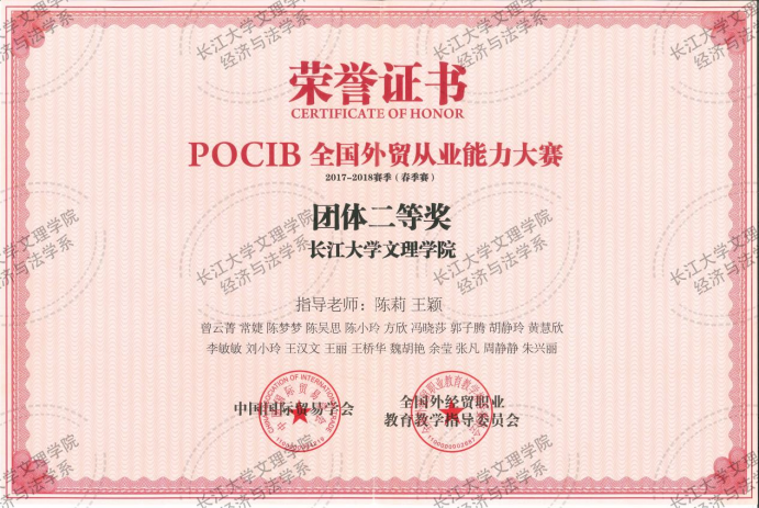 POCIB全国外贸从业能力大赛 2017-2018赛季(春季赛)团体二等奖