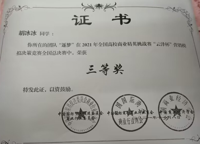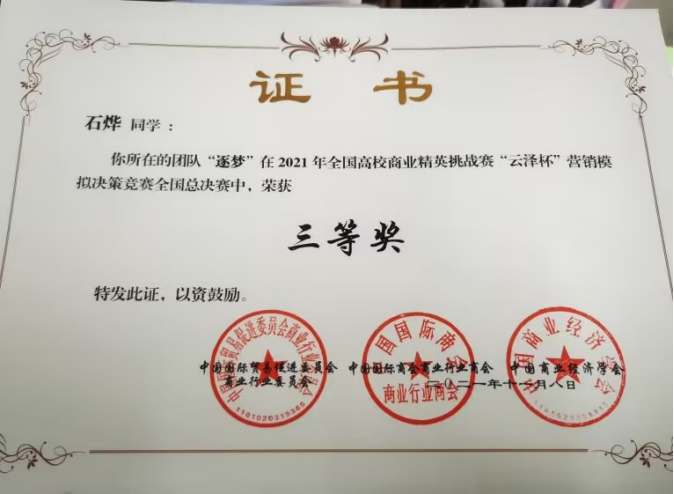 2021年全国高校商业精英挑战赛“云泽杯”营销模拟决策竞赛全国总决赛三等奖