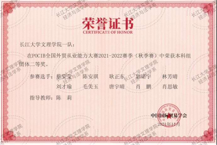 POCIB全国外贸从业能力大赛 2021-2022赛季(秋季赛)团体二等奖