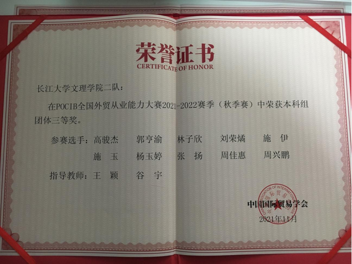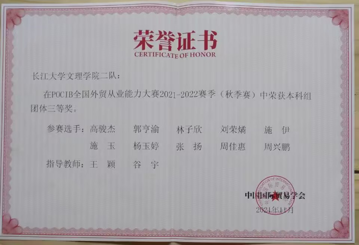 POCIB全国外贸从业能力大赛 2021-2022赛季(秋季赛)团体三等奖