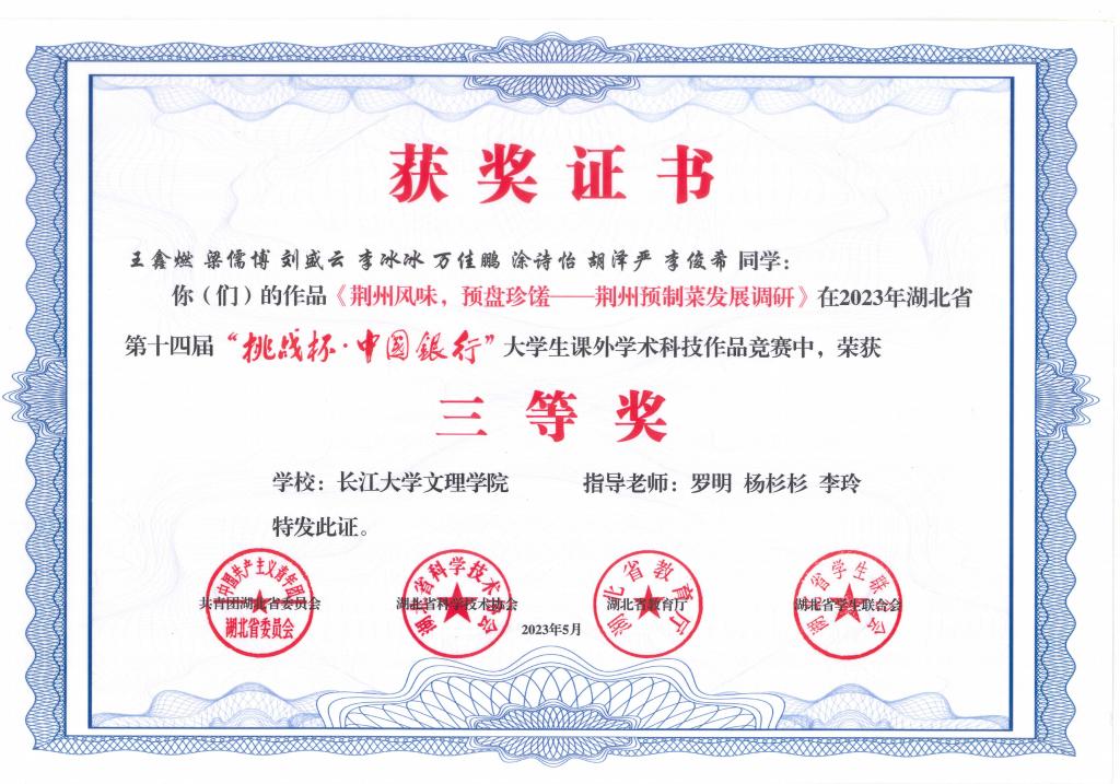 第十四届“挑战杯·中国银行”大学生课外学术科技作品竞赛三等奖