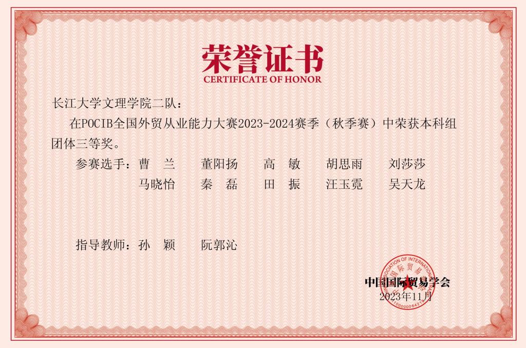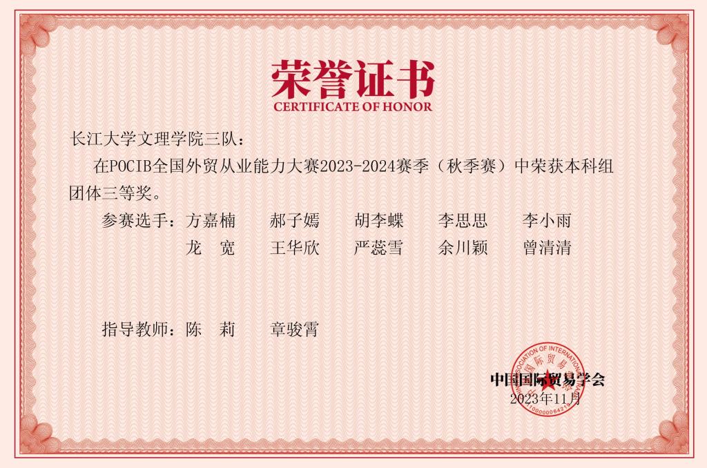 POCIB全国外贸从业能力大赛2023-2024秋季赛团体三等奖