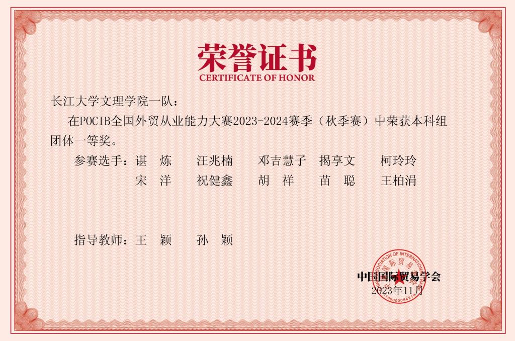 POCIB全国外贸从业能力大赛2023-2024秋季赛团体一等奖