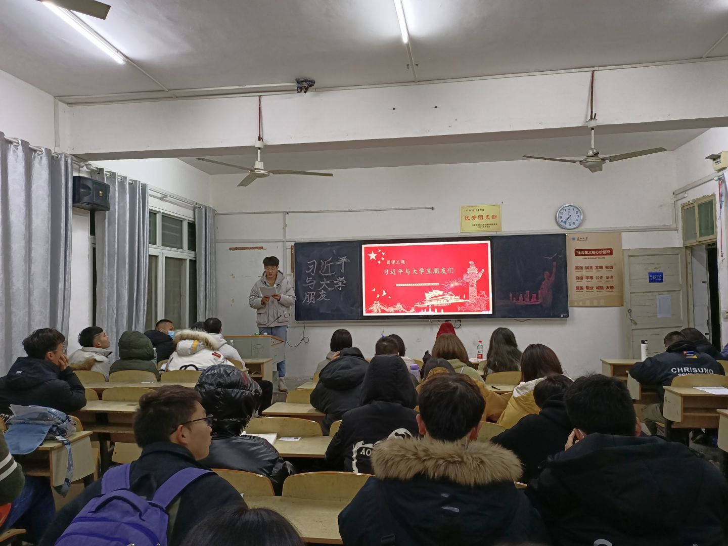 《习近平与大学生朋友们》是习近平总书记对大学生的深深嘱托,也是总书记对大学生的殷切希望。在此次主题团日活动中,各班根据实际情况,各自按不同形式组织了本次团日活动。大一年级刚升入大学,积极好动,在室外开展了主题团日活动。各班利用有趣的运动来活跃气氛;大二主要利用团课方式深入讲解习近平总书记对青年成长的殷殷期望和青年对自身发展的高标准、严要求;大三、大四各班则利用线上课堂的方式,带领大家树立起更加完美的价值观,其中金融5182班主持人在团日活动中与同学们分享了习近平与大学生的访谈实录,他们用最真实的例子拉近了习近平总书记与大学生们的距离。