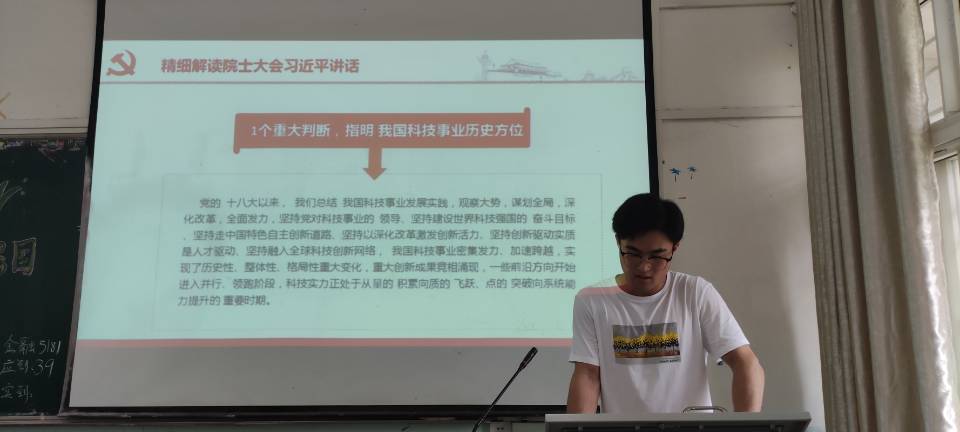 古人提出“敬教劝学,建国之大本;兴贤育才,为政之先务”,青年必须站在这样的战略高度上看问题,提高科技文化教育,努力实现教育、科技、经济相互支持、相互促进的良性循环。团课中金融5192班利用问答的方式让同学们进一步了解到了我国科技事业中所取得的新的历史性成就,同时明确了加快建设科技强国的重点任务目标。法学5202班则利用视频让同学们加强认知,让大家知晓新一轮科技革命和产业变革突飞猛进的原因,同时也让大家明白了科技创新成果的不断增加离不开新一代青年努力。科技自立自强是促进发展大局的根本支撑,青年作为祖国的未来更要直面问题、迎难而上,才能肩负起时代赋予的重任。
