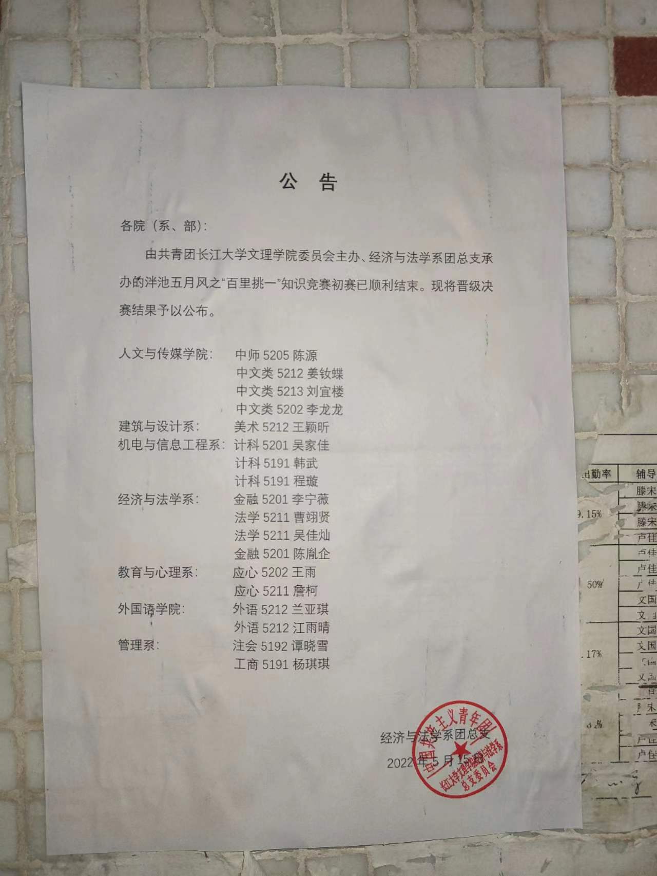 本网讯(见习记者 陈燕妮 李雅雯)5月14日晚七点,由共青团yl7703永利集团委员会主办、经济与法学系团总支承办的泮池五月风之“百里挑一”大学生知识竞赛活动初赛正式开始。西校区比赛地点在四教300教室,城中校区比赛地点在二教105教室。