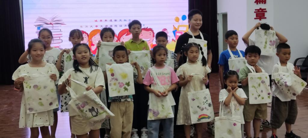 本网讯(见习记者:李欣怡 夏雪飞)经济与法学系于8月21日至25日在荆州市四机社区、新风社区开展的“三下乡”活动圆满收官。此次活动包括多门趣味丰富的课程。在植物拓印课上,孩子们认真倾听教程,记住步骤,活动开始后,由志愿者们分发材料,并在身旁悉心指导,给予帮助。除此之外,手工团扇也深受孩子们的喜爱。首先,志愿者们给每一个孩子分发团扇和材料包,再由孩子们发挥自己的想象力,给团扇粘贴上自己喜欢的图案,互相分享各自的成品。这两项课程都充分调动了孩子们学习的积极性,也充分发挥了各自的创造力。